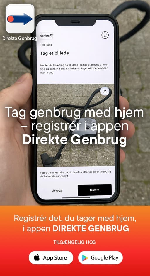 LANCERING: Norfors ruller i dag appen ‘Direkte Genbrug’ ud på alle genbrugspladser. Appen gør det hurtigt at registrere de ting, du tager med fra områderne for direkte genbrug – registreringen tager under et minut og bidrager til mere genbrug og mindre spild.